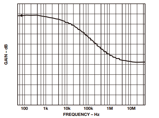 图3. AMP03(单片差动放大器)共模抑制比与频率的关系