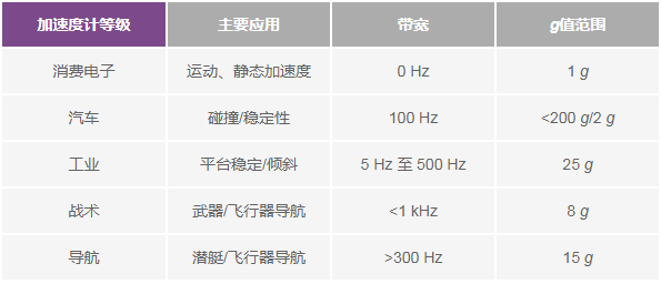 表1. 加速度计等级和典型应用领域