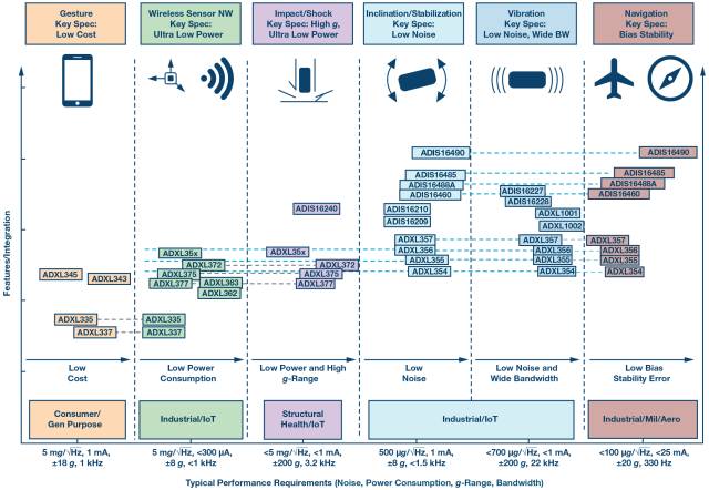 图1. ADI公司精选MEMS加速度计的应用版图