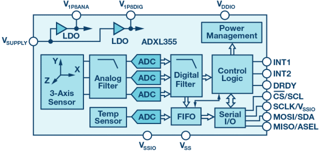 图3. 低噪声、低漂移、低功耗3轴MEMS加速度计ADXL355
