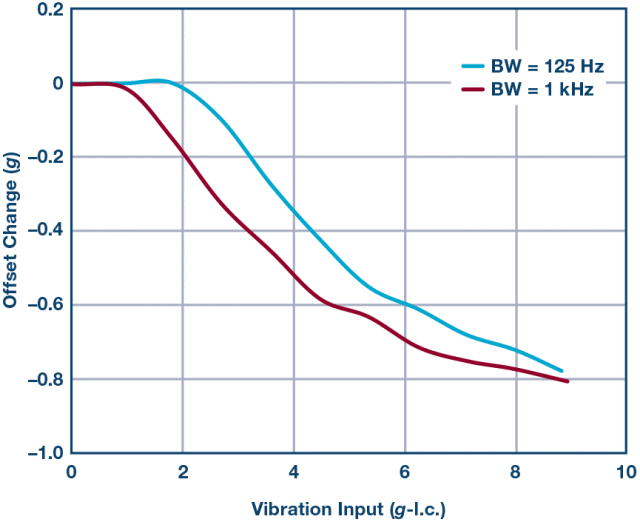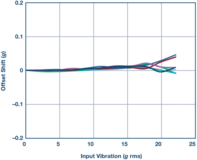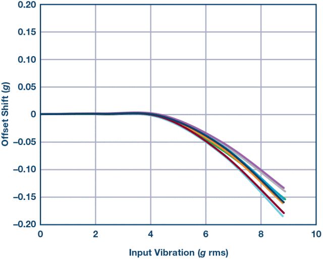 VRE是加速度计对交流振动(被整流为直流)的响应。这些直流整流的振动可能会使加速度计失调发生偏移,引起严重误差,尤其是在目标信号为直流输出的倾斜应用中。直流失调的任何小变化都可能被解释为倾角变化,导致系统级误差。