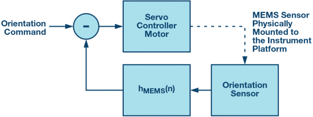 在稳定性应用中,MEMS传感器必须精确测量平台方位,特别是在运动时。图9是一个采用伺服电机校正角向运动的典型平台稳定系统的框图。反馈/伺服电机控制器将方向传感器数据转换为伺服电机的校正控制信号。