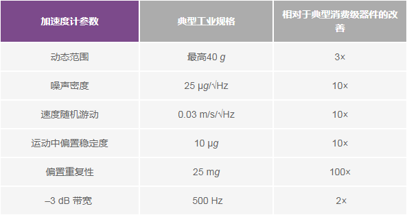 表6. 工业MEMS器件对所有已知潜在误差源进行全面测定,精度水平比消费级器件高出一个数量级以上