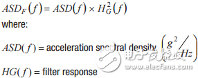 如图1所示,陀螺仪信号链常常包括滤波器,这有助于减少线性振动引起的噪声。以频谱项(幅度、频率)定义振动可在估算噪声贡献时考虑滤波器的影响。加速度频谱密度(ASD)函数是以频谱项表达振动的常见方式,通常使用单位g2/Hz。下面通过示例说明已知ASD和陀螺仪频率响应(HG)时估算噪声幅度的步骤: