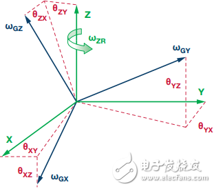 运动控制系统通常会建立惯性参考系,其中包含三个相互垂直90°的轴。这三个轴为MEMS IMU中的各个传感器提供方位参考。理想情况下,陀螺仪的各个旋转轴将与系统参考系中的轴完全对齐,将IMU安装到平台上之后,其将监视运行情况。这种情况下,在惯性参考系中围绕其中一个轴旋转,只有该轴的陀螺 仪会生成响应。实际操作中,无法实现这种效果,因为机械缺陷必定会造成一些对齐误差,从而导致离轴陀螺仪响应惯性参考系中围绕一个轴的旋转运动。量化此响应需要一些三角恒等式,并谨慎定义陀螺仪的对齐误差。