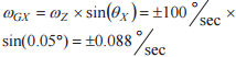最大旋转速率 = ±100°/s,频率范围 = 5 Hz到50 Hz
