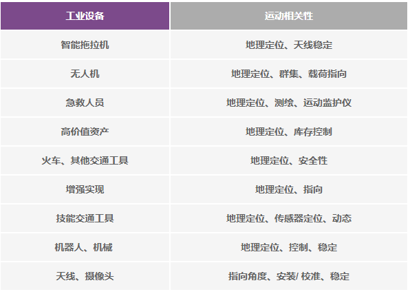 多数情况下,物联网都处于运动状态。即使不处于运动状态——比如,静止的工业安全摄像头——精密指向仍可能必不可少,或者,关于无用运动(篡改)的知识也可能非常有价值。如果能在恶劣的飞行条件下维持精确的指向角度,用光学载荷捕捉作物图像的无人机就有可能更快地带来更好的结果;如果能为光学数据提供准确的地理测绘信息,则有可能实现对数据和趋势的历史比较。智能交通工具,无论是地面交通工具,还是空中或海上交通工具,它们都越来越依赖GPS导航。然而,GPS遭受的精度压力也越来越大,无论是有意为之,还是自然使然(建筑物、树木、隧道等)。如果选择时考虑了精度需求,则额外的传感器仍然可以在事故中断期间可靠地进行航向角推算。表2列出了使IoMT(运动物联网)中的M(运动)概念名符其实的一些因素,注意运动与通用应用之间的关系。
