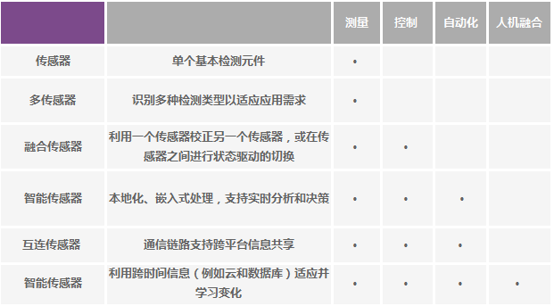 表4.以高质量传感器为基础,日益提升的集成度和智能程度推动自动化和人机融合