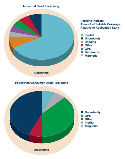 与其形成鲜明对比的是,工业导航定位推算方案是针对系统性能定义而设计的,要根据具体精度要求选择组件。更高质量的惯性传感器允许其发挥主要作用,适当利用其他传感器来缩小不确定性差距。比起推算/估算可靠的传感器读数间的位置,算法在概念上更关注最佳权重、切换和传感器互补,以及对于环境和实时运动动力学的认识。
