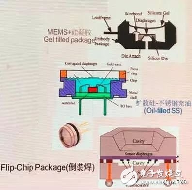目前,针对MEMS传感器主要有三种主流的封装方案,即MEMS+硅凝胶、扩散硅-不锈钢充油和倒装焊,三种封装示意图如图2所示。
