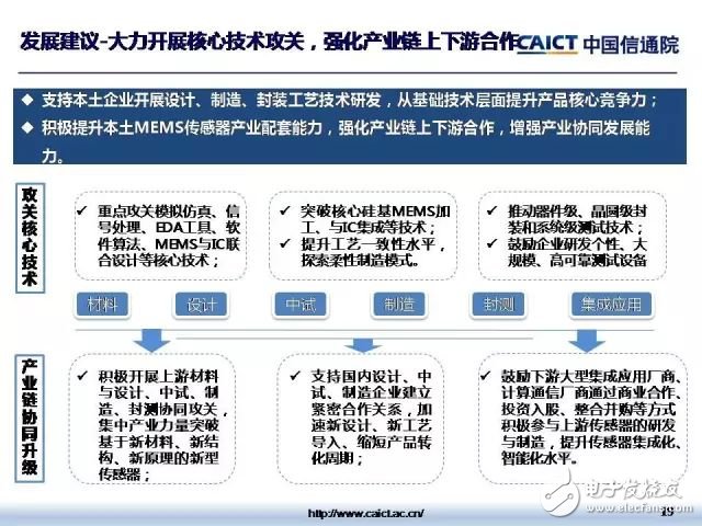 在峰会上,中国信通院信息化与工业化融合研究所许志远副所长对产业地图进行了解读。许志远副所长认为,智能传感作为物联网时代泛在感知的重要基础、“超越摩尔”产业发展的重要方向,在汽车、家电、装备、医疗、环保等领域的应用日趋普遍,已逐渐成为衡量国家信息化程度的重要标志。由于传感器从基础理论研究、产品研发到实现成本降低、大规模商用时间周期较长,目前国内整体呈现起步晚、规模小、技术跟随态势,急需明确技术发展方向、加强基础理论和技术工艺研发、增强产业链配套能力、开展产业化应用推广,逐步提升本土产业核心竞争力。