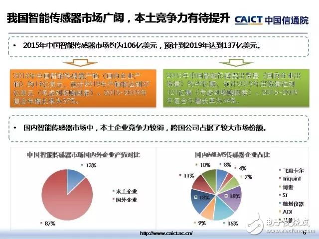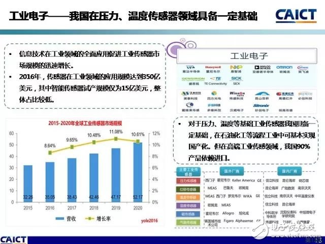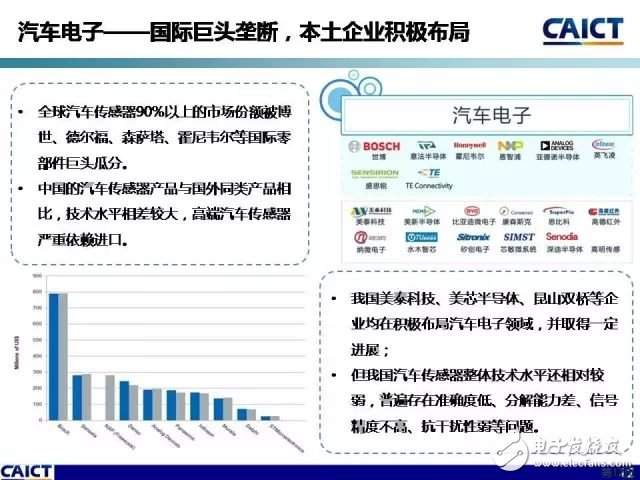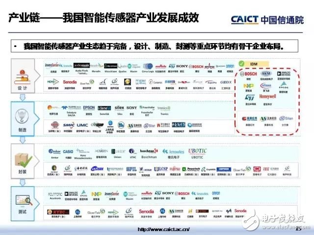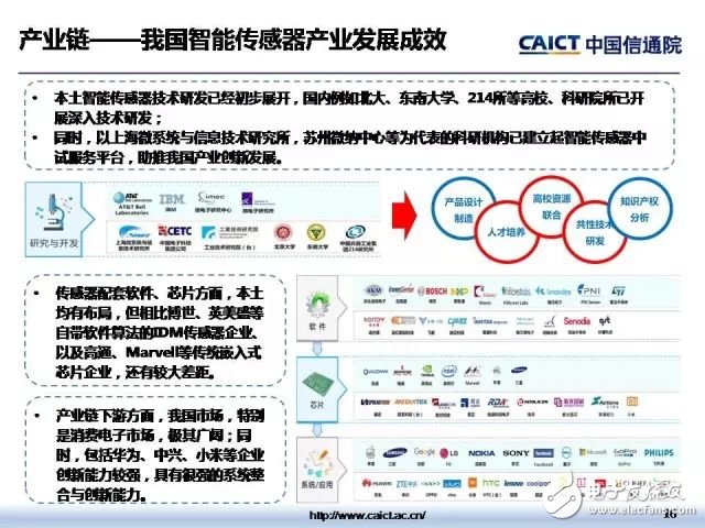 9月10日,在2017全球传感器与物联网产业峰会——暨SENSOR CHINA开幕式上,中国信通院与中国高端芯片联盟联合发布了智能传感器产业地图。地图对我国智能传感器重点产品、产业链关键环节发展现状、产业地域分布特征等进行了梳理与展示,较为全面、清晰、完整地构建了智能传感器技术产业全景图。