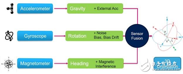 ST能提供完整的,高性能姿态检测融合算法--MotionFX/iNemoEngine。其能最大限度规避因加速度和地磁感应传感器数据异常,或者陀螺仪零飘带来的误差。多种数据输出选择,包括四元素,欧拉角,线性加速度以及重力矢量。