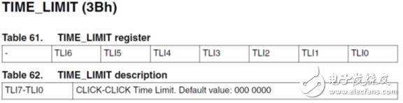 这里有一个阈值设置的寄存器,和三个时间的窗口设置的寄存器(timelimit , time latency, time window). 后面在介绍single click 和double click 时会讲到他们分别的作用。