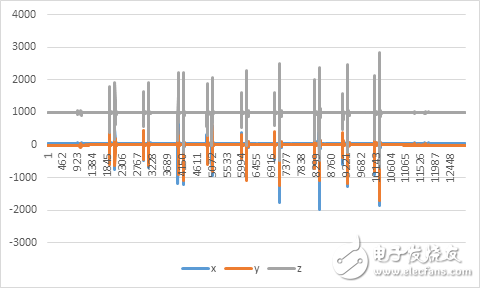 3)数据的采集,为了设置合理的时间窗口和阈值,要进行数据的收集,因为不同的应用,结构,材料可能不同,导致最终敲击的波形会有一些差异,建议收集数据时采用系统能支持的最大采样频率,这样采集的数据才能完整反映实际的波形。如下图是一个双击的波形图。可以看出波形比较尖锐,latency窗口比timelimit 窗口要明显的大。